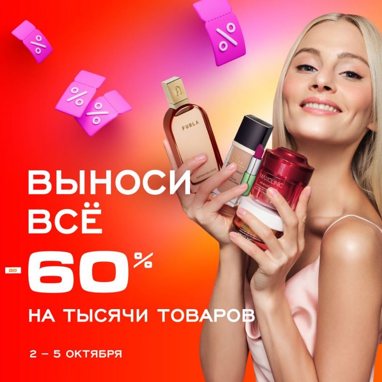 Скидки до 60% на бесконечное количество товаров: косметика, парфюмерия и аксессуары! Успейте купить!