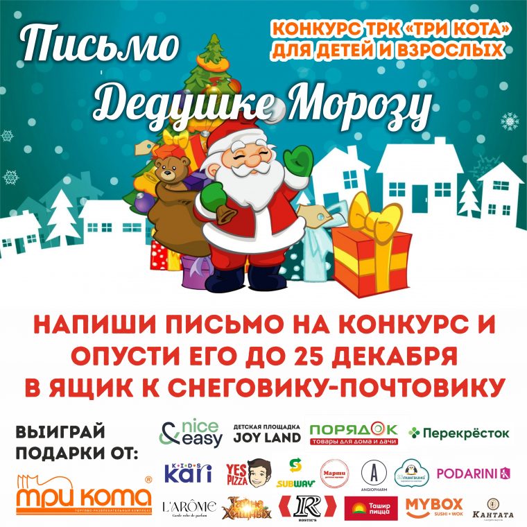 Наступает волшебный праздник — Новый год! И ТРК «Три Кота» объявляет традиционный КОНКУРС на лучшее ПИСЬМО Деду Морозу
