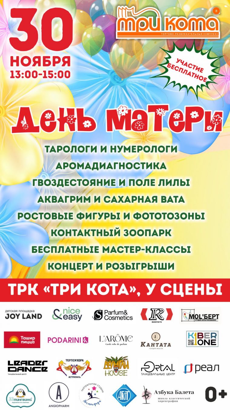 30 ноября с 13:00 до 15:00 ТРК «Три Кота» приглашает посетителей на праздник в честь Дня Матери!